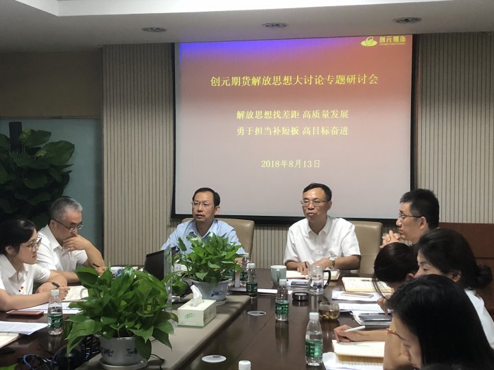 近日,根据创元集团《关于集团领导参加基层企业解放思想大讨论专题研讨会的通知》(苏创投委[2018]94号)精神和工作计划安排,创元期货党总支于2018年8月13日召开了主题为“解放思想找差距,高质量发展;勇于担当补短板,高目标奋进”解放思想大讨论专题研讨会。会议由创元期货党总支书记、总经理吴文胜主持,集团副总经理、创元期货董事长莫运水出席,创元期货高管及部分中层干部参加。