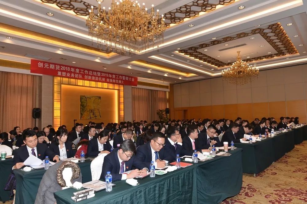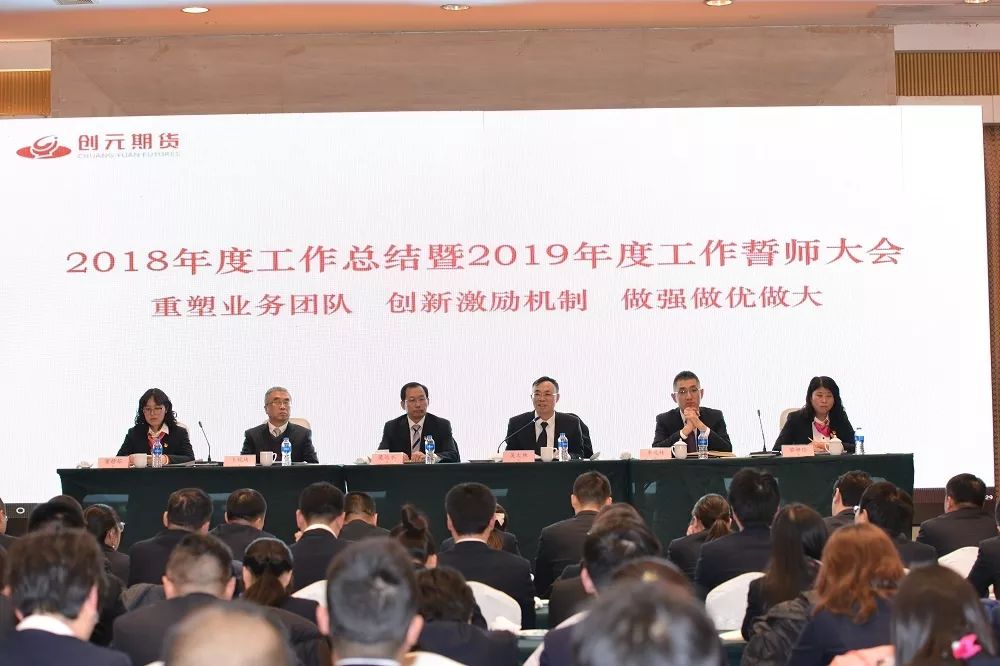 创元期货股份有限公司2018年度工作总结大会由总经理吴文胜主持,董事长莫运水出席,全体员工参加。