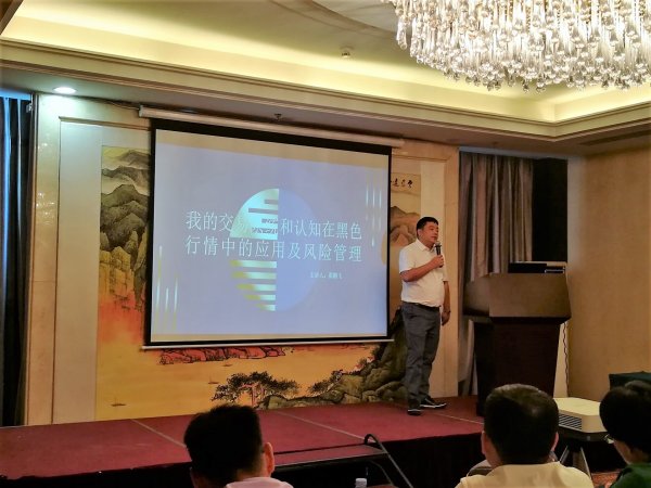 聚一资本投资有限公司基金经理翟鹏飞在《我的交易系统和认知在黑色行情中的应用及风险管理》主题演讲中,首先讲解了他对均线的认知,认为5均线时不会轻易拐向的,在具体操作时应该重点关注;其次分享了他对市场节奏的理解,认为市场节奏总是由单边-调整-单边-调整,以趋势线方式来运行的。在实际交易中,把握好市场节奏很重要,包括对支撑位与阻力位的理解:他认为价格的驱动以支撑和阻力的不断演化导致人的心理预期不断变化,形态的本质就是支撑阻力的表面反应。在风险管理环节,翟老师认为风险管理的本质是资金管理,在交易中,投资者应通过调整进场比例来控制资金的回撤风险,制定周期最大回撤标准,在风险最小情况下实现收益最大化,并结合自身实际,详细讲解了根据交易频率设置单笔止损和主动止盈止损两种风险管理方式。最后,他还结合盘面,对目前黑色系品种的行情走势与后市展望进行了分析,受到了与会投资者的欢迎。