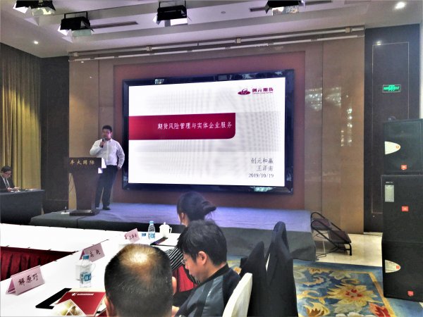 由创元期货主办、大商所特别支持的《能化产品投资研讨会》于2019年10月19日在安徽省合肥市经开区繁华大道10555号丰大国际大酒店召开。来自安徽及其周边地区的能化企业及个人投资者共29位代表参加了本次研讨会。