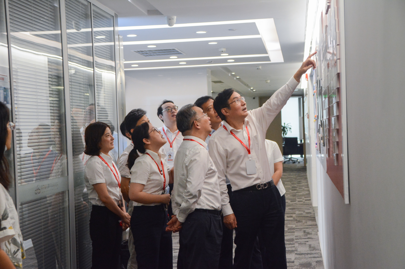 盛红明首先参观了创元期货各公共办公区域,了解各区域职能,实地察看了安全生产重要设施、设备完好状况和日常管理运维情况。随后在座谈会上听取了创元期货副总经理董静苏关于创元期货2020年以来企业基本经济运行情况、抗疫复工复产、落实安全责任制工作成效的汇报。